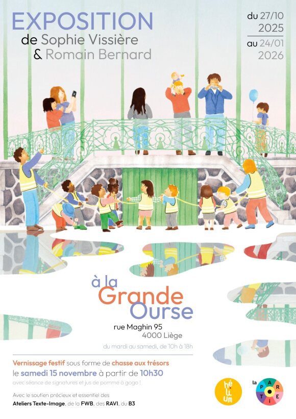 Une chasse aux trésors sera organisée durant la matinée du samedi 15 novembre, ainsi qu’une double séance de signature, arrosée de jus de pomme ! On remercie leurs éditeurs La Partie et Hélium ainsi que l’ASBL les ATI qui nous aident à vous proposer cette expo 5 étoiles.